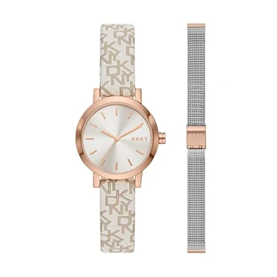 DKNY Watch for Women Soho, Three Hand movement, 28mm Rose Gold Stainless Steel case with a strap, NY6605SET