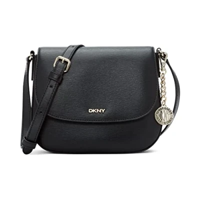 DKNY Women Bryant Park Small Leather Saddle Crossbody Bag, Black/Gold, Large
