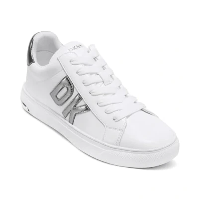 DKNY Women's Abeni Lace Up Sneakers, White and Nickel, 6 UK