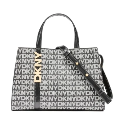 DKNY Women's Avril Small Satchel Crossbody 100% PVC with PU Trim, Black Logo and