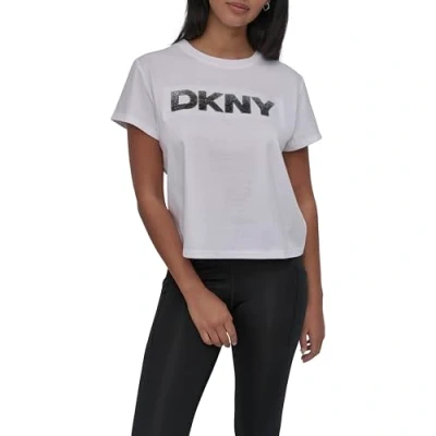 DKNY, Women's Blouse/Shirt, OMB Sequin LG SS Tee, WHT/Gunmetal, XL, White and Gunmetal, XL