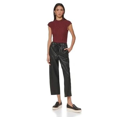 DKNY Women's Butter Pu Wide Leg Trousers Casual Pants, Black, M