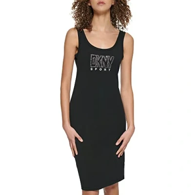DKNY Women's Casual Sport Tank Dress, Black/Silver, M