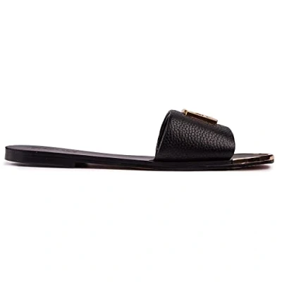 DKNY Women's Gracen Flat Leather Slides, Black, 6 UK