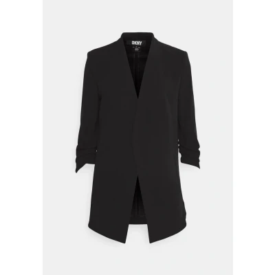 DKNY Women's Long Sleeve Open Front Jacket with Pockets Business Casual Blazer, Black, XS