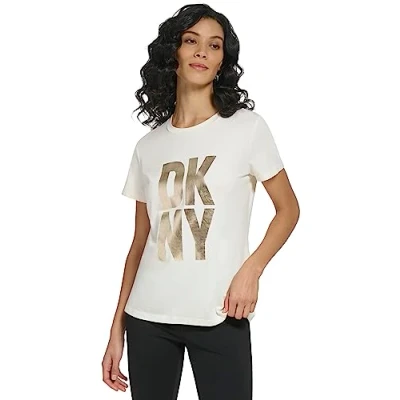 Not your typical tee, this style features a statement-making reflective DKNY logo. Crafted in a crew neck style that hits just at the hip, you'll be reaching for this tee again and again.