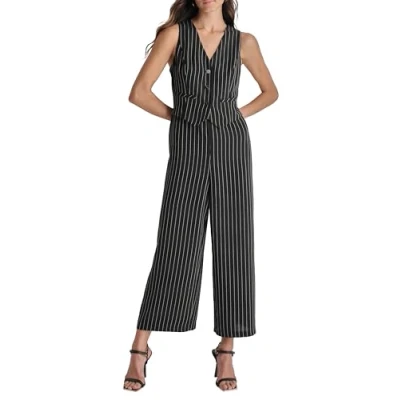 DKNY Women's Sleeveless Vest Jumpsuit Dress, Black/Ivory, 10