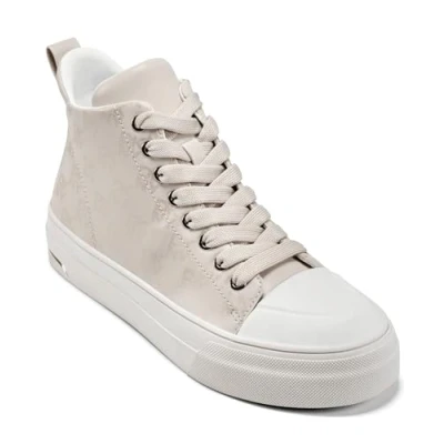 DKNY Women's Yaser Logo Lace Up Mid Sneaker, Bone, 6 UK