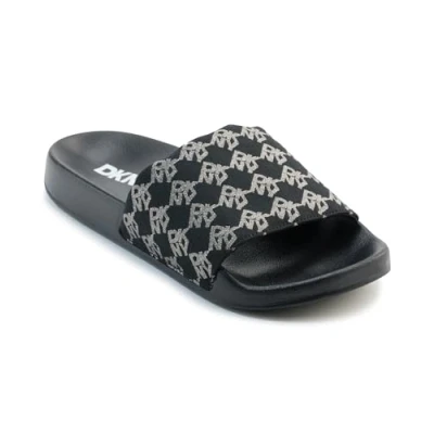 DKNY Zella Pool slides, Women's, Size: 2.5, Black/nickel Textile