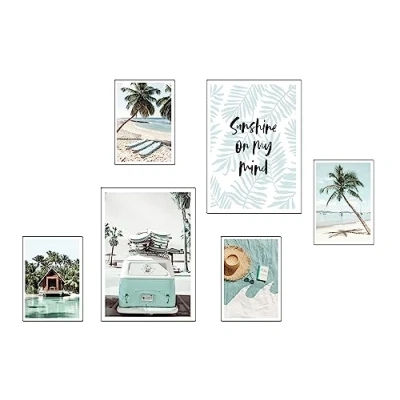 DKORARTE Set of 6 Wooden Base Paintings Modern Living Room Bedroom Landscape Beach Nature with Metal Hangers (2 x 38 29 cm ; 4 20 cm)