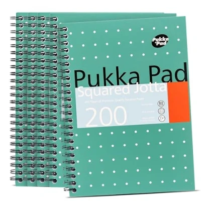 PUKKA PAD A5 WIREBOUND NOTEBOOK - The notebook is perfect for home, school, or office. This A5 wire-bound notebook lined features a trendy notebook A4 metallic squared design. Whether for notes, journaling, or work, this writing pad is a stylish and functional addition to your stationery. HIGH-QUALITY MATERIAL - Each A5 notebook contains 200 pages of premium 80GSM lined paper, preventing ink bleed-through. The a5 lined paper ensures neat, structured writing. FSC-certified, it’s an easy-to-use choice. Ideal for students and professionals needing reliable notepads a4 for daily use. COMPACT & PORTABLE WIREBOUND NOTEBOOKS - The Pukka Pads A5 notepad is compact for travel or office use. This a5 notepad fits easily in bags. This a5 notepad is perfect for desks or on-the-go use. Unlike other notepads, it stays intact, preventing loose pages. Great for notebooks A5 that last. VERSATILE DESIGN - This notepad has A5 lined paper with perforated edges, making it easy to tear notes neatly. Whether for work, study, or shopping lists, this notepad is a must-have. The notebooks ensure organised notes, ideal for professionals who need a notebook A5 that’s practical and efficient. PACK SIZES - Our note books come in packs of 1, 2, 3, 4, 5, 6, 9, 12, 15, and 30 provide a long-term supply for school, work, or personal projects. Each notebook a5 set includes 200 pages of high-quality a5 lined paper, ensuring a reliable solution for all writing needs.