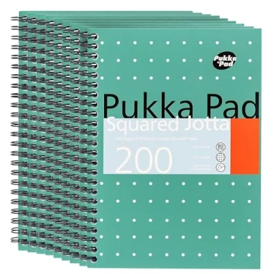 DLM Direct Pukka Pad A5 Squared Jotta Book 200 Pages Wirebound Notebook with 5mm Squares, 80GSM Paper Perforated Edges for School Office & Journaling (Pack of 9)