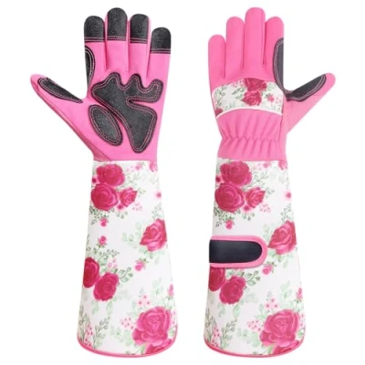 Forearm Protection: The total length of long gardening gloves is 15.6 inches, which means they can cover the elbow area of your arm, providing protection for your arm and preventing it from being scratched by branches or other plant branches during gardening or pruning work. Attention: This gardening glove is not prickly proof, so to avoid injury, please do not wear it to come into contact with plants with thorns Wear Resistant: The palms and fingers of women gardening gloves are made of microfiber leather, which is a synthetic leather made of polyester fibers, not real leather, and has good wear resistance and breathability. In addition, we have added an additional layer of patch on the palm and fingertips of the gardening gloves to enhance their wear resistance and increase their friction, thereby improving the grip of the gloves and allowing you to easily grip gardening tools Adjustable Cuffs: Men gardening gloves are designed with adjustable cuffs and elastic wrists. You can adjust the Velcro on the sleeves according to the size of your arm, making the gardening gloves fit your arm and preventing them from slipping off; Elastic wrists make the long men's garden gloves more snug to your fingers and palms, making them more comfortable to wear. The adjustable cuffs and elastic wrists also prevent insects, dust, debris from entering, effectively protecting your hands Comfortable and Breathable: The forearm of the long women's gardening gloves is made of breathable material, and the palm is made of microfiber leather, which is very breathable and comfortable, and absorbs sweat. Even if you wear them in hot weather, you will not feel stuffy and can keep your hands dry. The soft and elastic material reduces hand fatigue for gardeners who love gardening, making it very suitable for wearing all day Widely Applicable: The arms of the long gardening gloves have exquisite printed patterns, and the unique floral design makes your gardening more interesting. They are suitable for gardening and daily work, weeding, picking, landscaping, and other DIY light industry and outdoor activities. These gloves are lightweight gardening gloves that are essential for all gardeners, horticulturists, and others throughout the year. They are ideal gifts for family, friends, colleagues, and neighbors