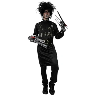 DM Scissor Hands on Costume for Adults and Children (Multiple Sizes) Includes Men Boys: T Shirt with Collar Belt Women Girls: Dress (One Size M/L, Men)