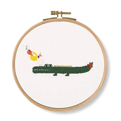 DMC Crocodile Kit, Includes 100% Printed Cotton Fabric, Embroidery Threads, Bamboo Hoop and Instructions