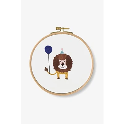 DMC Lion Kit, Includes 100% Printed Cotton Fabric, Embroidery Threads, Bamboo Hoop and Instructions