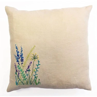 This meadow flowers cushion cover kit to embroider traditionally is both pretty and perfect for an armchair or a sofa and will add a delicate touch to any interior. Its colourful flowers cannot help but introduce a soft sophistication to your home. Embroidered by your own hands, this cushion is sure to impress! The motif can be positioned in the centre of the cushion or near an edge. Delivered with the threads, the needle, the linen fabric 40cm x 40cm, and a magic printed sheet to help reproduce the design. Comes without stuffing, for beginners.