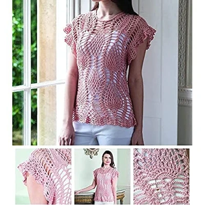 DMC Crop Sleeve top with Pearl Collar Crochet Pattern