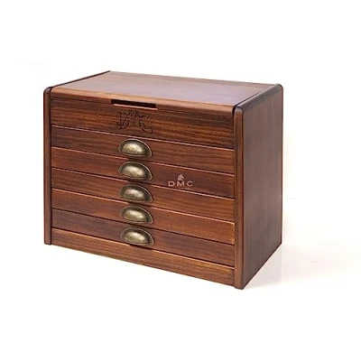This small chest of drawers contains a skein of DMC stranded cotton in every colour. An exquisite piece with a vintage design, it will look beautiful in any room. It allows for an easy organisation of the skeins either by number or by colour. Delivered with 500 skeins. Item shape: rectangular