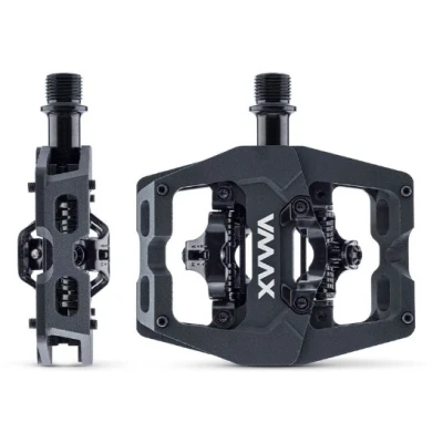 Compared to other SPD compatible clipless pedals, the VMAX has a larger platform for greater shoe support – combined with a low profile – which results in easy foot placement and cleat relocation, for those foot-out flat-out moments.An extruded and CNC machined 6061-aluminium body, finished with laser-etched DMR and VMAX logos, means the VMAX pedal can take a lifetime of abuse in the toughest environments, whilst remaining lightweight at 467g a pair. The combination of a fully sealed, serviceable bearing and DU bush, matched with double internal body seals, delivers super-smooth performance, season after season.Featuring a double-sided, SPD compatible clipless system, the VMAX ensures reliable power transfer, predictable and secure cleat engagement, with easy tool access, for adjustable entry and release – simple to set up and ride, and fully race-ready. If you want to clip in to win, our DMR VMAX pedals are exactly what you’re looking for.FeaturesBUILT TOUGH – Extruded, CNC machined, 6061 aluminium platform, combined with Shimano SPD compatible cleat system, makes the VMAX built to last.SPD CLIPLESS SYSTEM – Similar to other pedals using the SPD system, the VMAX has 4° of float to allow for free movement of the shoe, for a more confident ride.LARGE AND LOW PROFILE PLATFORM – Compared to other SPD compatible clipless pedals, the VMAX has a larger platform, combined with a low profile, resulting in easy foot placement and cleat relocation. Larger platform supports the shoe when clipped in, for better control and foot-feel.SLIMLINE PROFILE – Lower profile for fewer pedal strikes, with more ground clearance.SERVICEABLE DESIGN – Fully sealed bearings and DU bushes, allow the VMAX to be easily serviced, perfect for taking on seasons of abuse in the toughest of environments.LIGHTWEIGHT – Only 467g per pair.SpecificationSPD compatible design, with easy tool access.467g per pairServiceable bearing and DU bush system, with double internal body sealsBearing service kit available separatelyEasily replaceable cleat cages4 replaceable DMR pins per side, for additional, tuneable gripHeavy duty 4140 CroMo steel axlesTough extruded CNC machined aluminium body4º float, 12° release cleat set supplied. Replacement cleat set available separatelyAnodised coloured finishDimensionsPedal incl. Axle: 112mm x 116mmPlatform: 80mm x 95mmDepth: 18mmAdditional info:Please note: Torque setting at the axle, fitting to crank, for the DMR Bikes pedal range, is 40–55Nm.