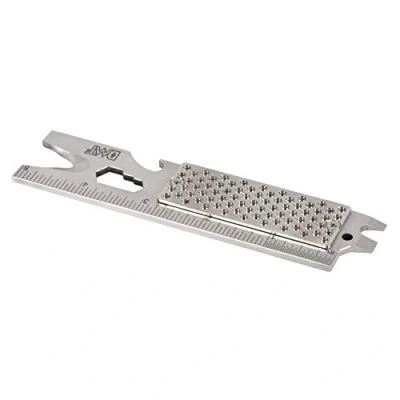 Multifunction Sharpener provides 9 functions: (1) Screwdrivers, (2) Lanyard hole, (3) Imperial Ruler, (4) Metric Ruler, (5) Hex Wrenches in 7, 8 and 10 mm, (6) Wire Stripper / Cutter, (7) Bottle Opener, (8) Diamond Sharpener, (9) File Fine diamond for a razor sharp edge Sharpens knives faster than conventional stones with DMT's micronized monocrystalline diamond surface No oil is needed - sharpen dry or with water Durable construction will provide years of performance and reliable service