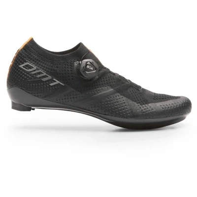 The KR1 is the shoe that started the Engineered Knit revolution. DMT were the first brand to develop this technology, which has since been widely adopted by other brands. However, DMT's proprietary knit technology still outclasses its competitors in every aspect including weight, fit and comfort.The KR1 has been developed in collaboration with and worn to victory by Elia Viviani, Tadej Pogacar and other Pro riders. It offers incredible comfort that will forever change how you think about cycling shoes. Light, breathable, proprietary Engineered 3D Knit construction eliminates pressure points, fits like a glove, is super breathable and thanks to the super supportive anatomic carbon outsole provides race winning energy transfer.This is the ideal shoe for you if you are looking for a top level, incredibly lightweight road shoe which offers perfect fit and optimum power transfer."My cycling shoes must fit like a sock and turn power into speed. I am proud to have helped personally develop these shoes" - Elia Viviani, Italian and Olympic ChampionDMT’s propriety knit technology is not only truly revolutionary, but features across their full range, all the way from the highest level down to their entry level models. This means it offers ALL cyclists for the first time, whatever their level of riding, a shoe that fits as comfortably as a glove!Engineered 3D Knit features a multi-layer, once piece construction which flexes and conforms to the individual shape of each rider’s foot, offering a truly comfortable and customised fit.Mapping technology has been used to design the different integrated structures within the knit, insuring perfect support for the foot across all areas. The upper wraps around the foot without compressing it in any wayDMT Knit is not only incredibly lightweight, but it is also highly breathable, wicking moisture away from your feet, much like the fabric of your cycling jersey works to keep you dry when you are riding hard.No seams, no excess material and no stitching equals no pressure pointsKey Features:Use: RoadUpper Construction: Full, once piece, multi-layered, Engineered 3D knitKnit Technology: Engineered 3D, variable thickness, multi-layered with integrated webbing, highly breathable and moisture wickingAnkle Collar: Elasticated rib knit for perfect comfort and adherence to the legHeal: ReinforcedClosure: BOA Fit system with single IP1 dial for lightweight and precise fit adjustmentSole: Anatomic Carbon outsole follows the ergonomics of the foot, to offer support, comfort and maximum energy transfer. Its low profile at the toe section means there are no pressure or pinch points where the sole joins the upperCleats: Suitable for 3-bolt cleats and includes 8mm of front-rear cleat adjustabilityAdditional Features: Reflective accents on the black versionWhats In The Box: Pair of Shoes, storage bag, shoehorn, warranty & care informationDesigned and developed in ItalySizes:From 37 to 47Half sizes from 37.5 to 45.5Weight:248g (based on size 42)
