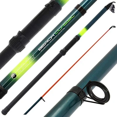 A 2x 12ft, telescopic beachcaster made of tough fibreglass Designed specifically for sea fishing with the following features: Brand Angling Pursuits Rod name Beachcaster Pieces 1 (6 sections) Length ft / m 12ft / 3.6m Closed length 95cm closed Casting weight 50-150g / 2-2.5oz Material Fibreglass Colour Dark green Casing Plastic sleeve with clip