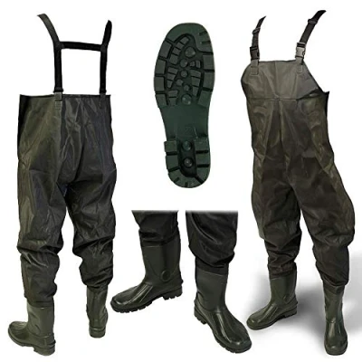 DNA NEW 100% Waterproof Lightweight Green PVC Carp Coarse Fly Fishing Chest Waders with Elasticated Quick Release Buckle Suspenders and High Grip Boots/Wellies in (Size 46)