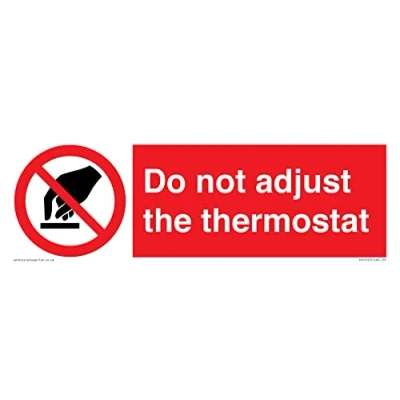 P010 : Do not touch This sign is made from plastic semi-rigid 1mm 1mm thin plastic sign, can be screwed, stuck with adhesive, or attached with cable ties. Not suitable for hanging. 31 Sign Text: Do not adjust the thermostat