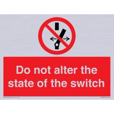 P031 : Do not alter the state of the switch This sign is made from vinyl silver sticker A5 landscape Sign Text: Do not alter the state of the switch