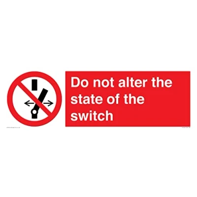 P031 : Do not alter the state of the switch This sign is made from vinyl / sticker Air Release vinyl makes it easy to stick to flat, clean surfaces without bubbles. Not for rough, plastic or dusty surfaces. 62 landscape Sign Text: Do not alter the state of the switch