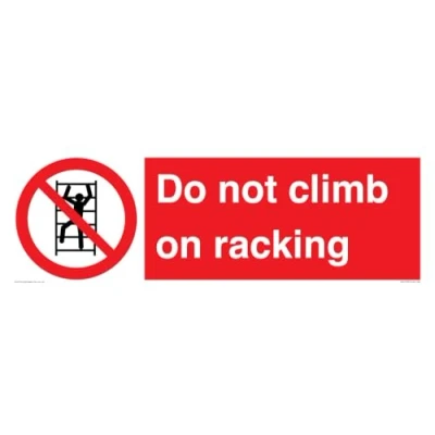 P009 : No climbing This sign is made from vinyl / sticker Air Release vinyl makes it easy to stick to flat, clean surfaces without bubbles. Not for rough, plastic or dusty surfaces. 62 Sign Text: Do Not Climb On Racking