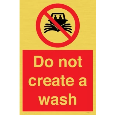 P507 : Do not create wash / no speeding of watercraft This sign is made from vinyl gold sticker Gold metal effect sticker for flat, clean surfaces. Not for rough, plastic, or dusty surfaces. A4 portrait Sign Text: Do not create a wash