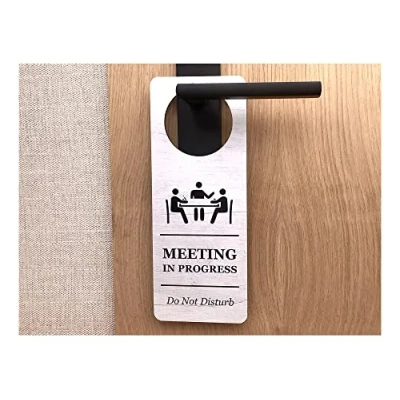 Reduce Interruptions: Clear “Do Not Disturb – Meeting in Progress” message helps maintain focus in offices, clinics, hotels and home offices. Premium Build: Rigid 3 mm ACM (Aluminium Composite) with UV-printed graphics for a durable, fade-resistant finish. Large & Readable: 230 × 90 mm format with a 63.5 mm (2.5") handle hole to fit most standard door handles. High-Contrast Options: Choose Whitewood effect (black text) or Blackboard effect (white text) for crisp readability. Ready to Use: Hang directly on the door handle—no tools or adhesives required; wipe-clean surface for easy care.