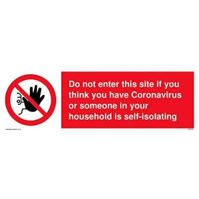 P905 : No access This sign is made from vinyl high tack A stickier sticker. Uses a stronger adhesive to make it more suitable for plastic surfaces like Wheelie Bins or where the sticker might get rubbed. 31 landscape Sign Text: Do not enter this site if you think you have Coronavirus or someone no access symbol