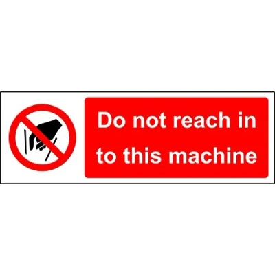 Do not reach into this machine Safety sign Self adhesive sticker 300mm x 100mm