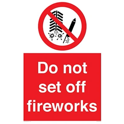 P040 : Do not set off fireworks This sign is made from vinyl / sticker Air Release vinyl makes it easy to stick to flat, clean surfaces without bubbles. Not for rough, plastic or dusty surfaces. A2 portrait Sign Text: Do not set off fireworks