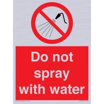 P016 : Do not spray with water This sign is made from vinyl silver sticker A5 portrait Sign Text: Do not spray with water