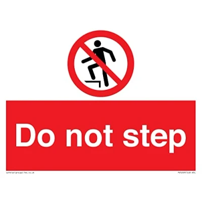 P019 : No stepping on surface This sign is made from vinyl / sticker Air Release vinyl makes it easy to stick to flat, clean surfaces without bubbles. Not for rough, plastic or dusty surfaces. A5 landscape Sign Text: Do not step