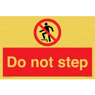 P019 : No stepping on surface This sign is made from vinyl gold sticker Gold metal effect sticker for flat, clean surfaces. Not for rough, plastic, or dusty surfaces. A4 landscape Sign Text: Do not step