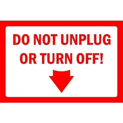 Do not unplug or turn off safety sign Self adhesive sticker (300mm x 200mm)