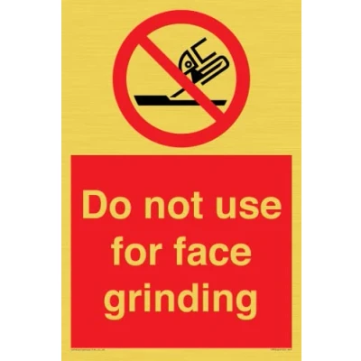 P032 : Do not use for face grinding This sign is made from vinyl gold sticker Gold metal effect sticker for flat, clean surfaces. Not for rough, plastic, or dusty surfaces. A4 portrait Sign Text: Do not use for face grinding