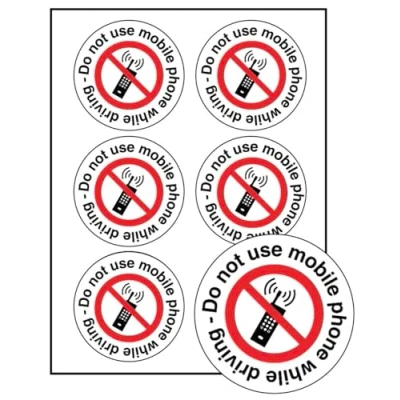 Do not use mobile phone while driving 65mm dia sheet of 6 peel 'n' stick labels
