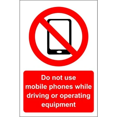 Do not use mobile phones while driving or operating equipment Safety sign Self adhesive sticker 200mm x 150mm Digitally printed and laminated for extra durability Remove backing film and apply to dry, smooth, oil free surface., Manufacturer: KPCM Display ltd