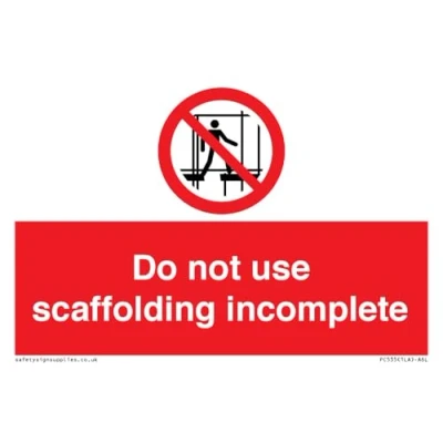 Do not use scaffolding incomplete Sign 150x100mm A6L