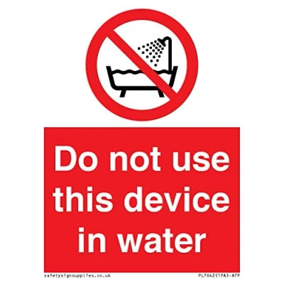 Do not use this device in water Sign 75x100mm A7P
