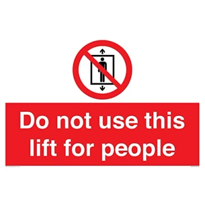 P027 : Do not use this lift for people This sign is made from vinyl / sticker Air Release vinyl makes it easy to stick to flat, clean surfaces without bubbles. Not for rough, plastic or dusty surfaces. A2 landscape Sign Text: Do not use this lift for people