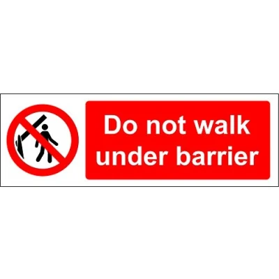 Do not walk under the barrier safety sign 1.2mm Rigid plastic 300mm x 100mm