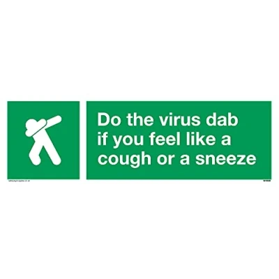 Safe condition cough sneeze into elbow This sign is made from vinyl high tack A stickier sticker. Uses a stronger adhesive to make it more suitable for plastic surfaces like Wheelie Bins or where the sticker might get rubbed. 31 landscape Sign Text: Do the virus dab if you feel like a cough or a sneezewith safe condition dab symbol