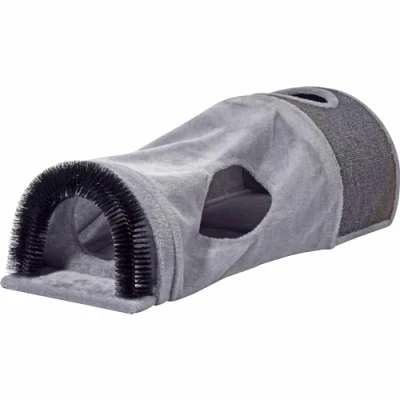 Cat tunnel dimensions: approx. 37.5 x 27 x 87 cm (L x W x H) The cat tunnel is made of FSC-certified wood and is covered with plush The cat tunnel can be folded out and can be stowed away to save space Includes scratching surface on the outside and play ball with bell inside The cat cave has 5 entrances of which one is surrounded by a scratching brush